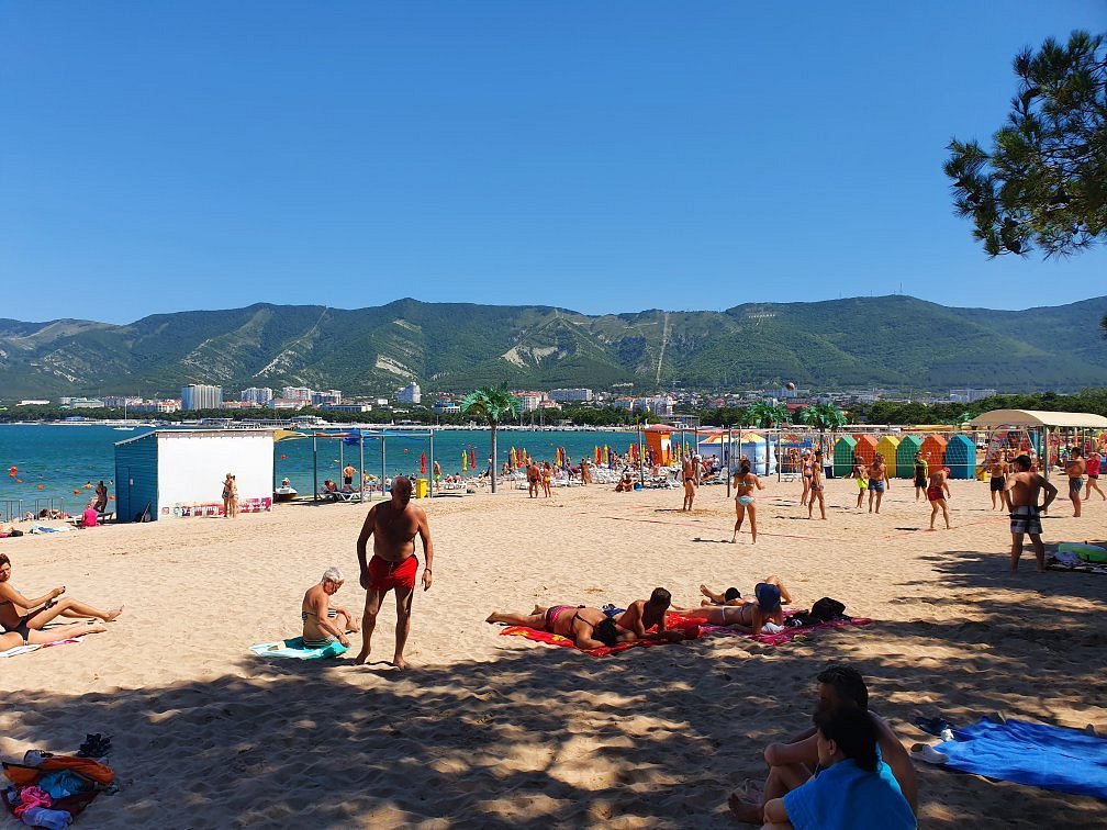 Центральный пляж – самый большой в геленджика, искусственно созданный с песчаным покрытием, длиной 1,4 км и шириной до 80 м. Расположенный у центральной набережной, он оборудован шезлонгами, душами и спасательными вышками, идеален для детьми с пологим входом в моря. Здесь пульсирует жизнь с кафе и развлечения, предлагая виды на горы.