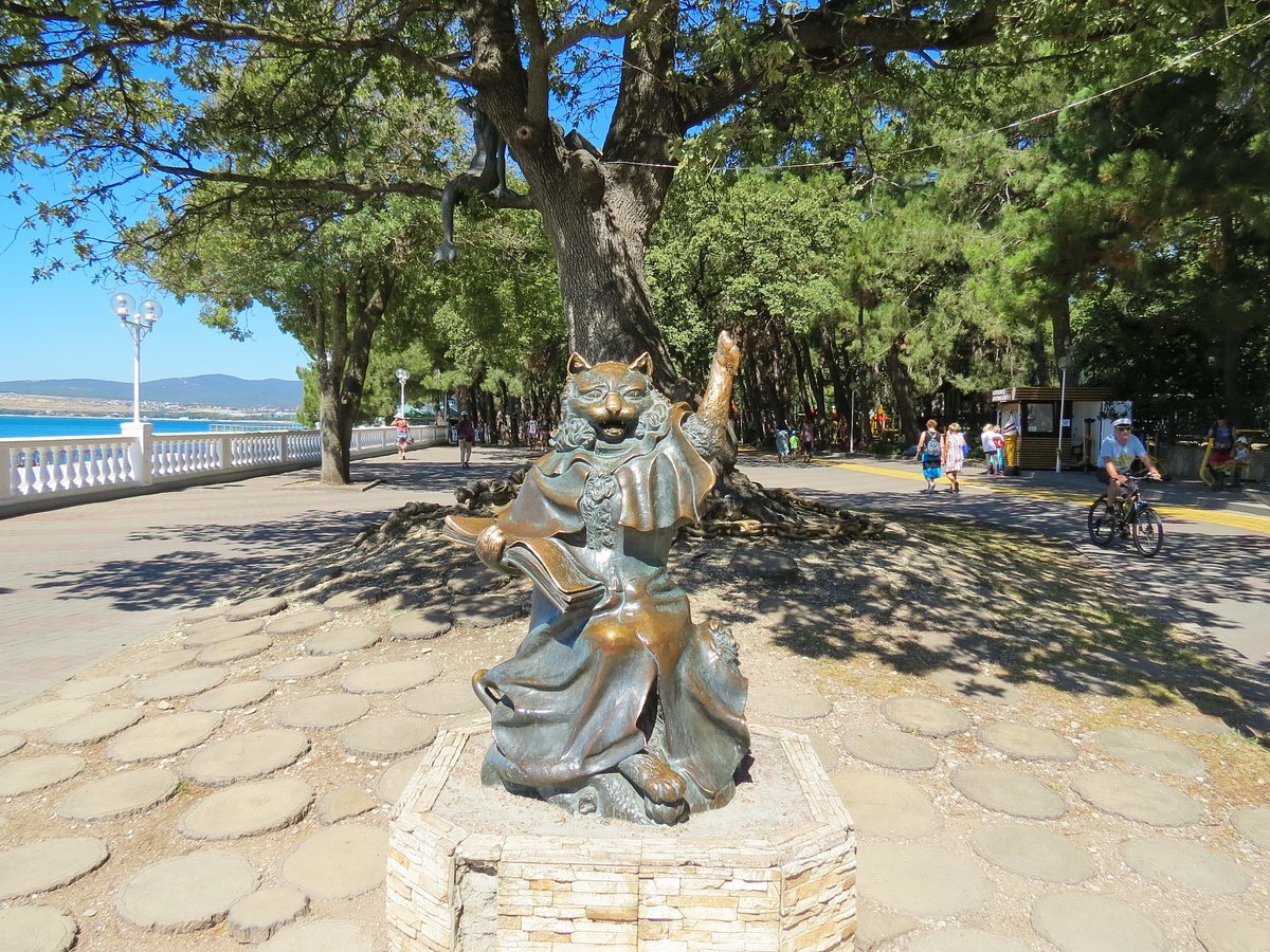 Памятник коту-ученому из пушкинских сказок – бронзовая скульптура кота в мантии с книгой, сидящего под дубом на набережная геленджика, установленная в 2008 году. Это забавное места привлекает детьми и взрослых, символизируя мудрость и сказочность курорта. Рядом с лермонтовский бульвар, он стал популярным для фото, где посетители трут нос коту на удачу, добавляя игривости прогулкам вдоль черного моря.